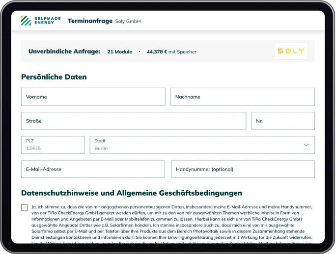 Ein Solaranlagen-Rechner, kurz Solarrechner, ist ein innovatives Online-Tool, das Ihnen einen Preisvergleich für Solaranlagen unterschiedlicher Montagefirmen und Hersteller liefert. Sie müssen lediglich einige Daten über das Gebäude angeben, das mit einer Photovoltaikanlage ausgestattet werden soll. Zudem liefert Ihnen ein Solarrechner eine Wirtschaftlichkeitsanalyse – so können Sie eine fundierte Entscheidung treffen und die Installation Ihrer neuen Solaranlage auf dem Dach Ihres Eigenheims in Angriff nehmen.